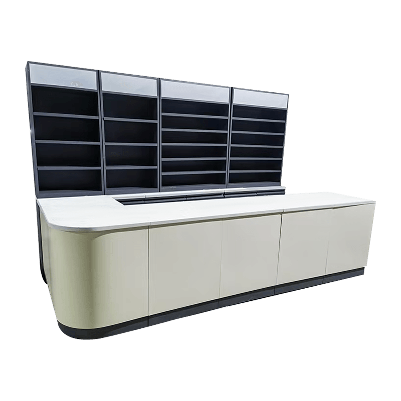 Reka bentuk yang indah, sangat ergonomik, membuatkan pelanggan berasa selesa dan selesa semasa mendaftar keluar. Bahagian atas meja adalah luas dan rata, memudahkan juruwang mengimbas kod dan menyelesaikan akaun dengan cepat, serta untuk pelanggan meletakkan barangan kecil yang mereka beli buat sementara waktu, seperti gula-gula getah, gula-gula pudina dan barangan pengguna impulsif yang lain.